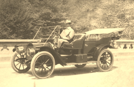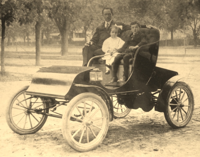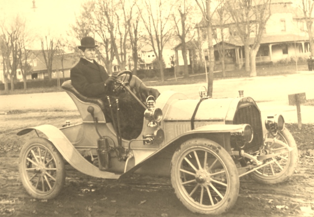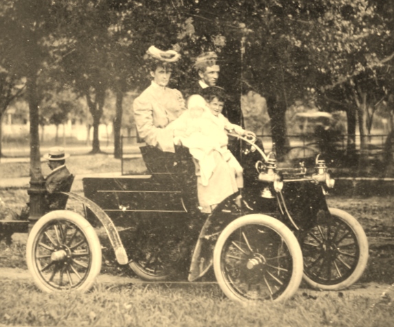 Here are some photos of A.W. with family members and others, in various automobiles, They were taken between about 1901 and 1907.