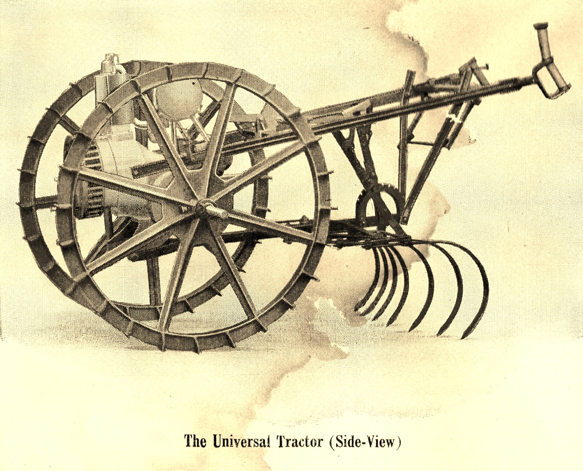A.W. must have had a premonition that his automobile shop was in trouble. Shortly before his business went under, A.W. started dabbling on the side in the sales of a gasoline-powered cultivating machine called the Universal Tractor. This was while he was dividing his time between Brooklyn and Millerton. (In addition to being a cultivator, the Universal Tractor had a system of pulleys and belts that could be used to drive other machines. A brochure for the machine illustrated how it could be used to operate the following devices: a cream separator, a grindstone, a grain separator, a washing machine, a saw, a dynamo, a pump, and a corn mill. Hence its name – the universal tractor.)