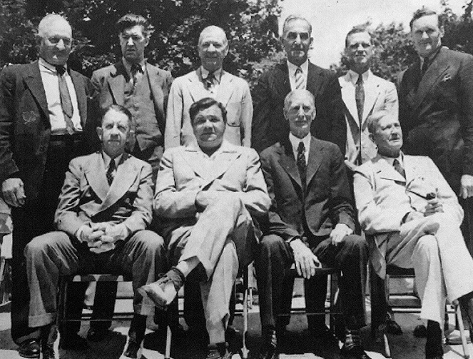 We're getting a little farther off-topic here, but there's another possible reason for Babe Ruth's knowledge of and interest in Millerton. The fellow sitting to Ruth's right in this photo of baseball hall of famers taken in 1939 is Eddie Collins. Eddie was a Millerton native son, born there in 1887. He played as a second baseman in Major League Baseball from 1906 to 1930 for the Philadelphia Athletics and the Chicago White Sox. He obviously knew Ruth as well as some of the other famous names in baseball. (For you baseball fans who are reading this: From left to right in the front row: Eddie Collins, Babe Ruth, Connie Mack and Cy Young. From left to right in the back row: Honus Wagner, Pete Alexander, Tris Speaker, Nap Lajoie, George Sisler and Walter Johnson.)