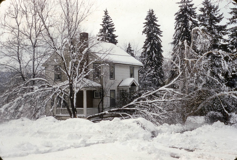 In March 1956 Yorke and Margie sold their house on Dutchess Avenue for $10,000 and paid $12,000 to buy the house at 26 Maple Avenue that Yorke’s father and mother had been living in. (As the result of a house numbering system change, probably in accordance with a county Emergency 9-1-1 law enacted in 2000, the address for this house is now 14 South Maple Avenue.) Yorke and Margie moved in in April, and A.W. and Lucy moved to a different house in Millerton. This photo of the house was taken in 1956, and Yorke and Margie used the image on their Christmas card that year. Twenty-six Maple Avenue was a huge, old 11-room house with plenty of space for two families, but only the four of them - Yorke, Margie and the two boys - lived in it. But not for long; son Steve would leave for college in September 1958.