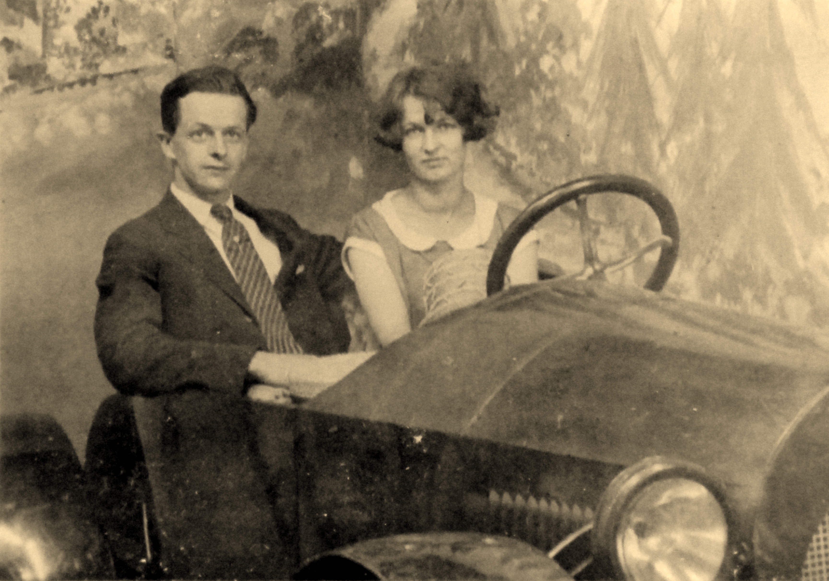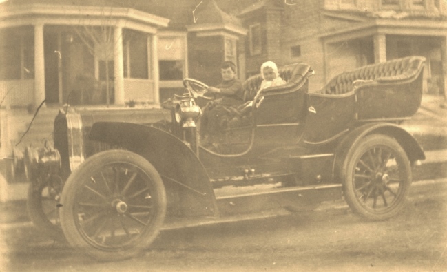 just as a little kid sitting behind the wheel of a big car - like these. The photo on the left was taken at their home in Brooklyn probably around 1903-04. And the one on the right is Yorke with his kid sister Biz, probably in 1905, and presumably also in Brooklyn.