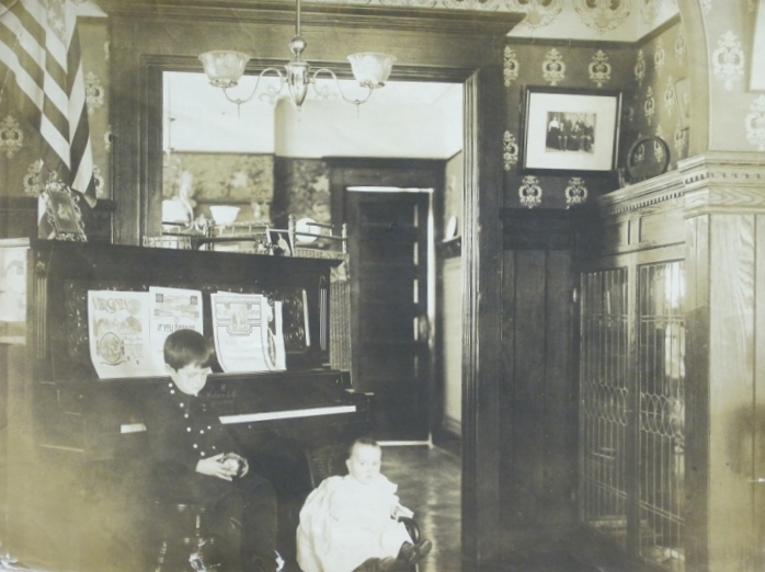 Yorke’s younger sister, Edith (“Eacy”), once said that Yorke used to play the banjo. She remembered him sitting on the porch at Cluyvala and strumming the banjo. That might have been the same banjo that Yorke’s father had in the early 1890s. There's a banjo barely visible on top of the piano in this photo of Yorke and his sister Biz at their home on 20 Waldorf Court in Brooklyn. It was probably taken around 1904.